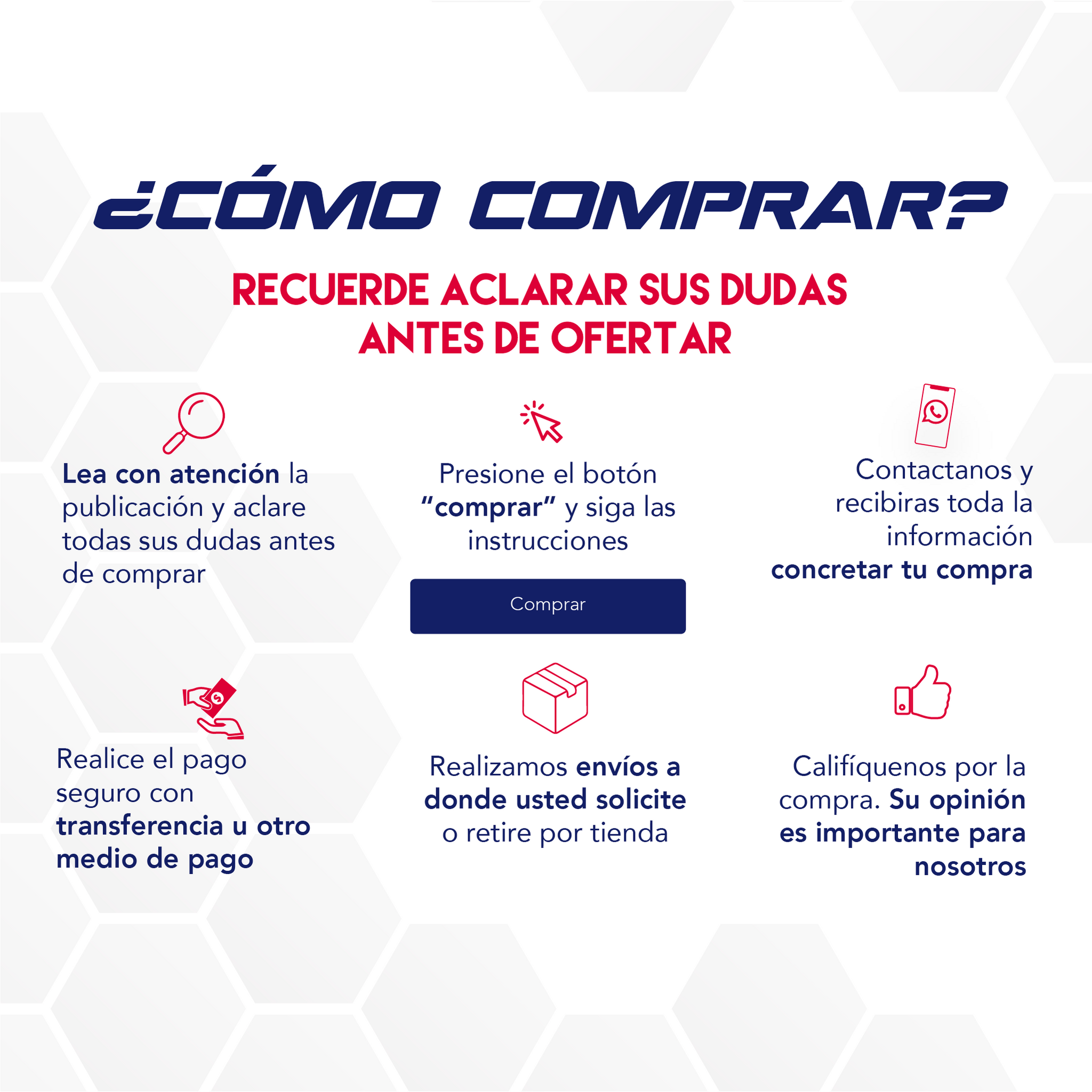 TODOS LOS ENVIOS QUEDAN POR PREVIO ACUERDO ENTRE EL COMPRADOR Y NOSOTROS para que su mercancía llegue hasta la agencia de su preferencia